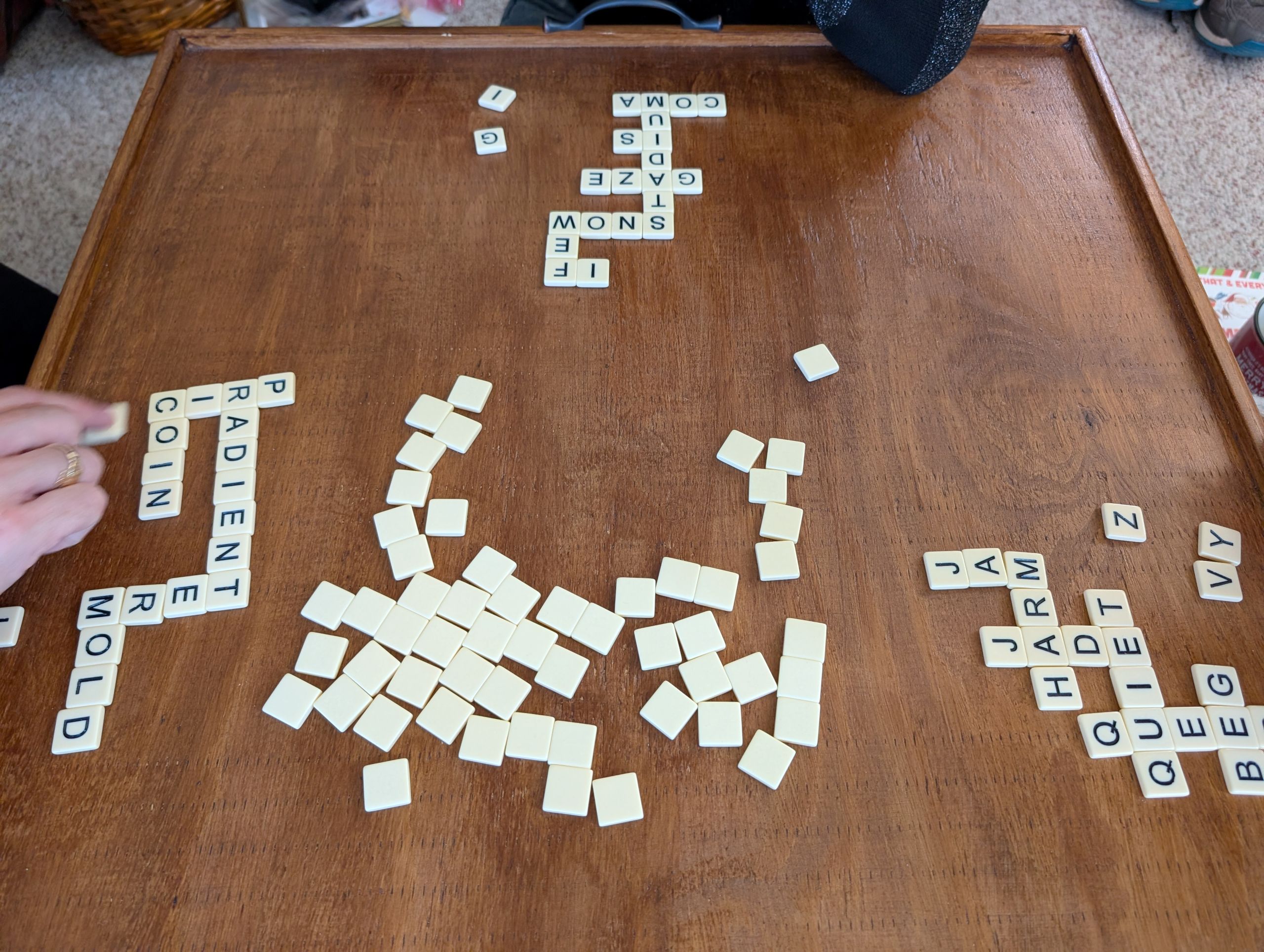 We played a lot of games like Banagrams and Clue and Ticket to Ride (which we call the Train Game.)